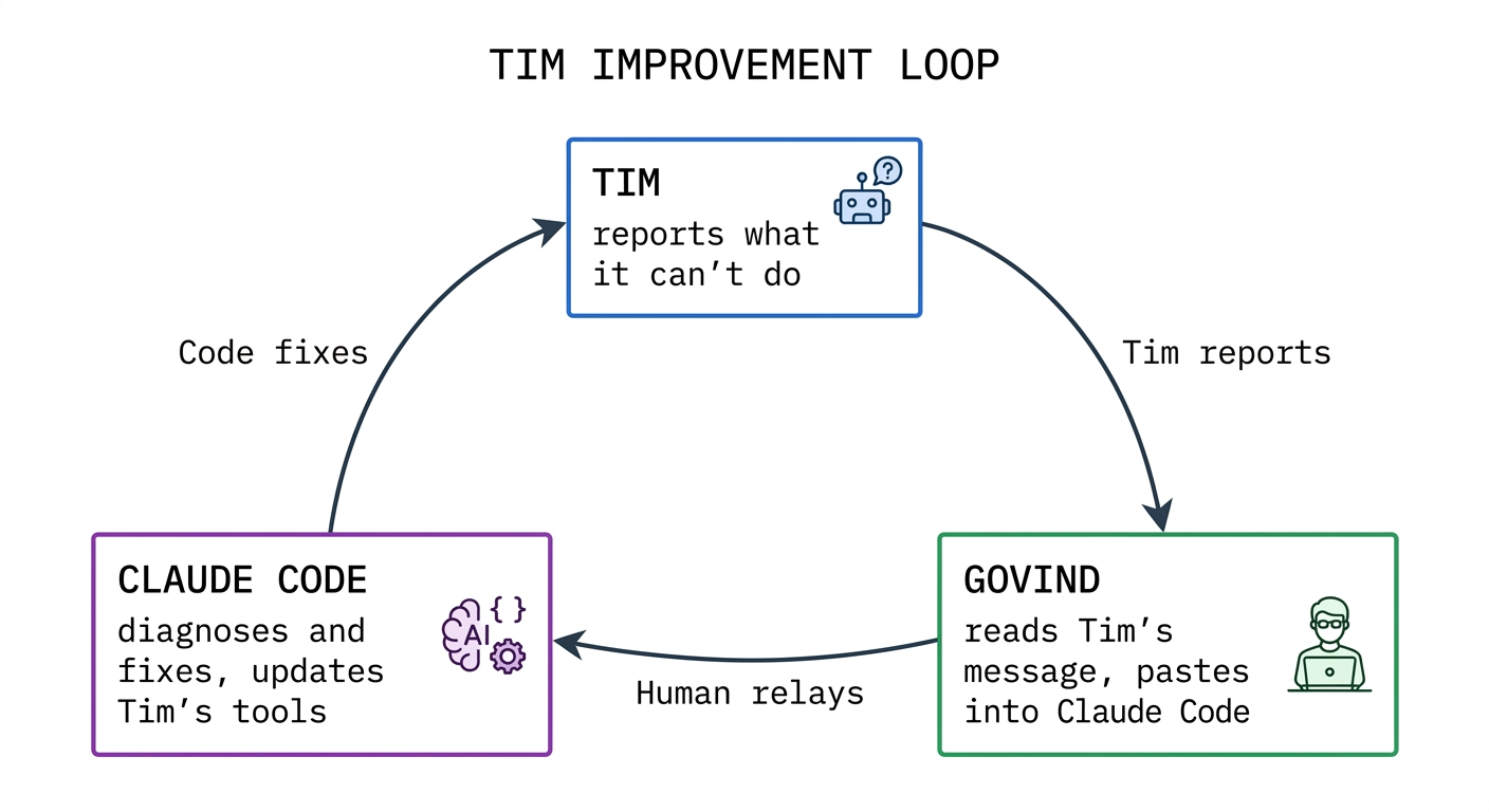 Claude Code looked at it, understood the context, and started working on the solution. When Claude Code hit a wall or needed more information, I grabbed that output and fed it back to Tim -- or adjusted the environment based on what Claude told me.