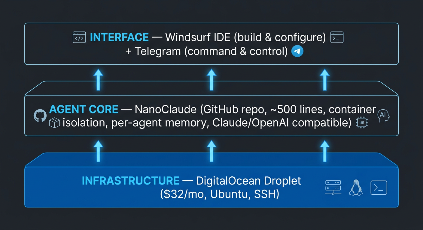 I built my own autonomous AI agent for under $50/month and live-streamed the entire blueprint. A DigitalOcean droplet, a GitHub repo called NanoClaw, Windsurf, and more hard-won patience than I'd care to admit. Here's exactly how I did it.